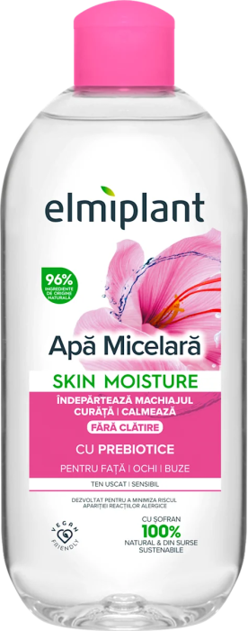 Apa micelara Elmiplant Skin Moisture este special formulata pentru curatarea delicata a tenului uscat si sensibil. Indeparteaza eficient machiajul si impuritatile, oferind in acelasi timp calmare si confort pielii.